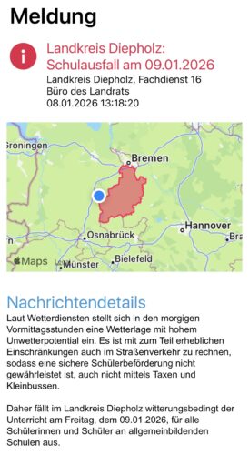 Merkblatt über den Unterrichtsausfall bei extremen Witterungsverhältnissen im Landkreis Diepholz